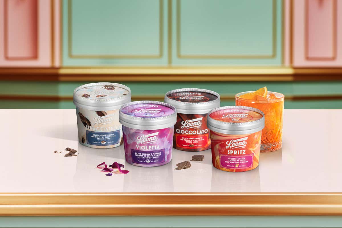 Leone 1857 presenta quattro gusti unici di gelato - ioletta, stracciatella, cioccolato grezzo e Spritz - e gluten-free. Nascono dalla collaborazione con il partner Cascina Biraga
