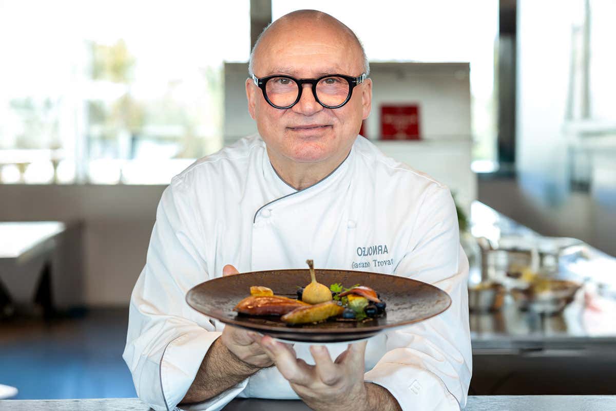 Per Trovato, il piccione rappresenta un tributo alla cucina della nonna, un piatto che unisce memoria e tecnica contemporanea. «Nasce nella cucina di mia nonna, è il piatto del cuore e lo porterò avanti all’infinito» racconta lo chef.
