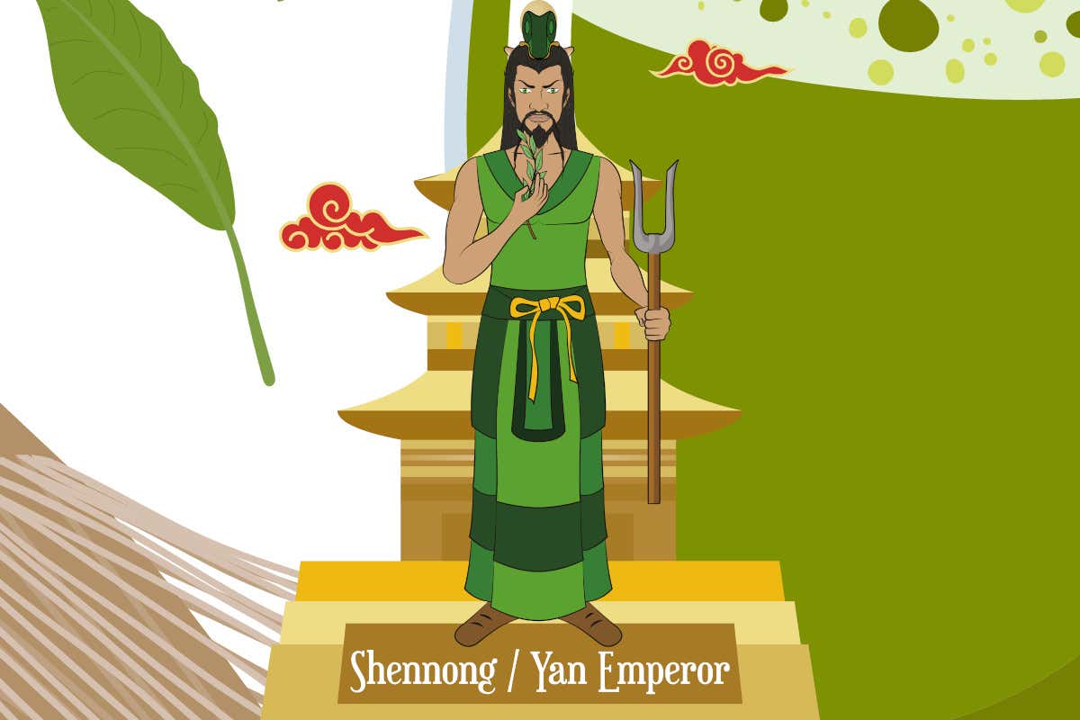 La Cina è il Paese dove, per primo, si è sviluppato il consumo del tè e dal quale si è poi diffuso in tutto il mondo. La tradizione cinese attribuisce la scoperta di questa pianta a Shen Nong, un sovrano mitologico considerato il padre dell'agricoltura e della medicina. Secondo una leggenda della tarda epoca imperiale, Shen Nong ogni giorno assaggiava cento diversi tipi di piante per scoprirne le proprietà. Di queste, settantadue erano velenose e, dopo averle ingerite, usava il tè per depurarsi.