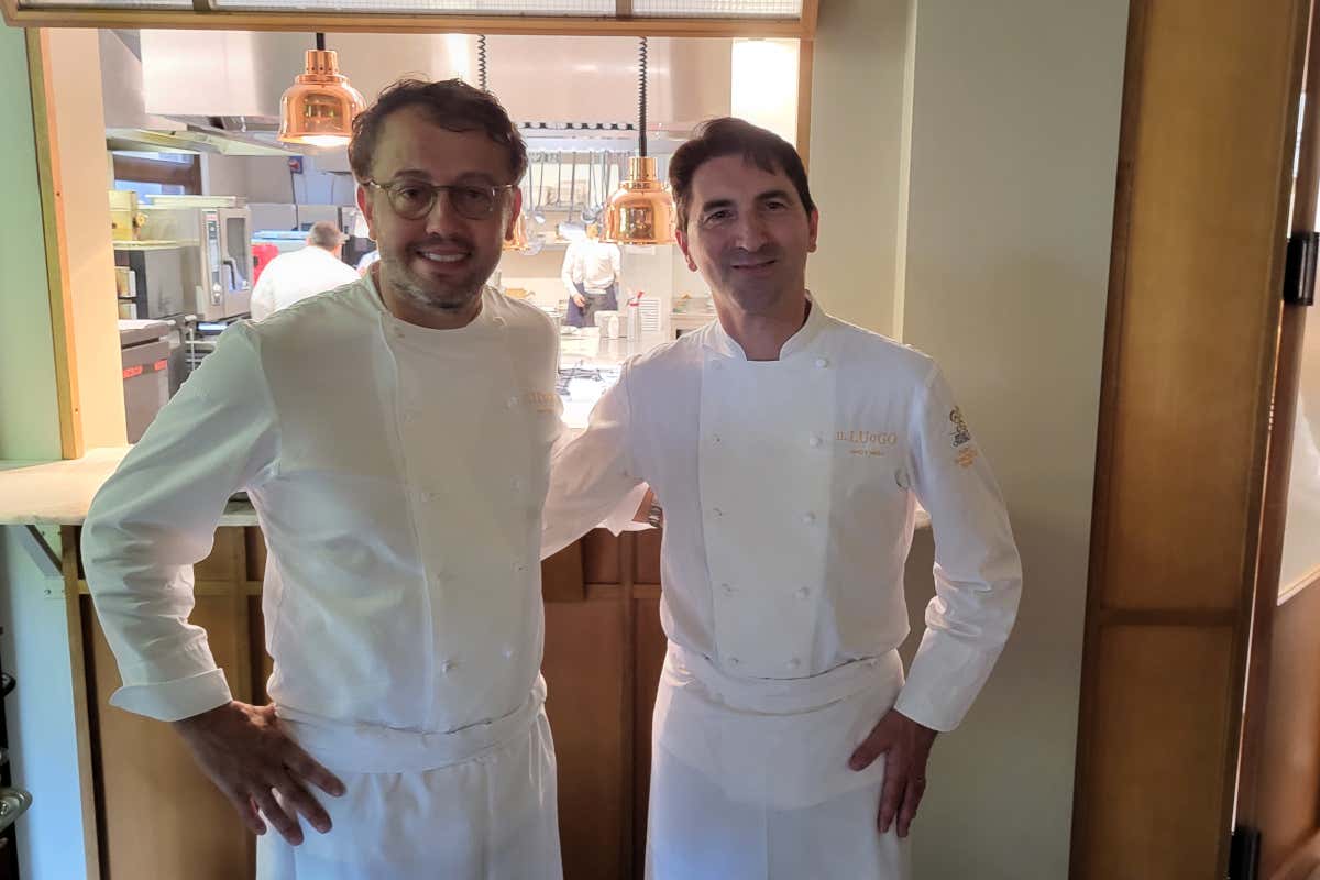- “L’equilibrio perfetto”: scampo scottato, Pancetta di Zibello Negroni, salsa Choron e purea di carota al cardamomo, il racconto di una cucina che cresce nel confronto e nella fiducia reciproca, come accade ogni giorno tra i due chef.