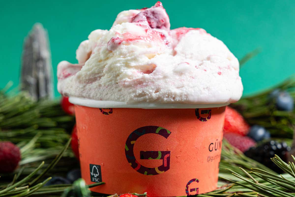 Il gelato al gusto Dolomiti, che combina pino mugo e frutti di bosco, espressione diretta dell’identità alpina del brand