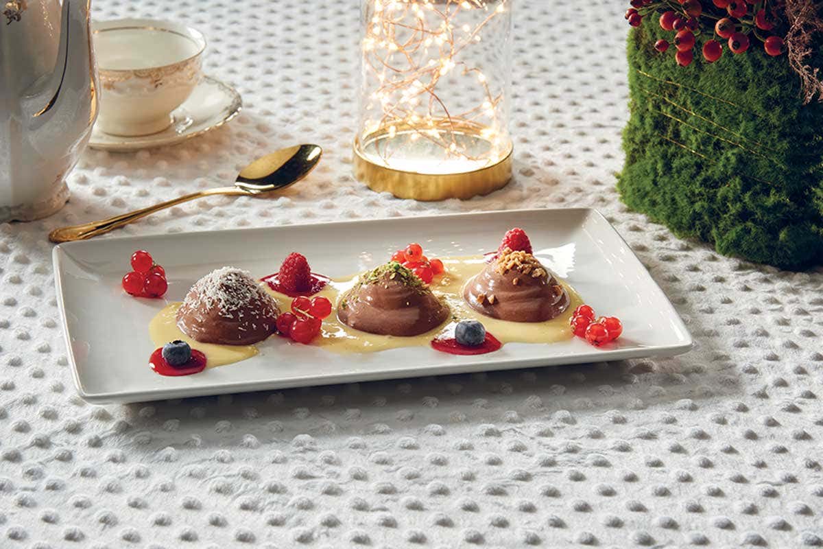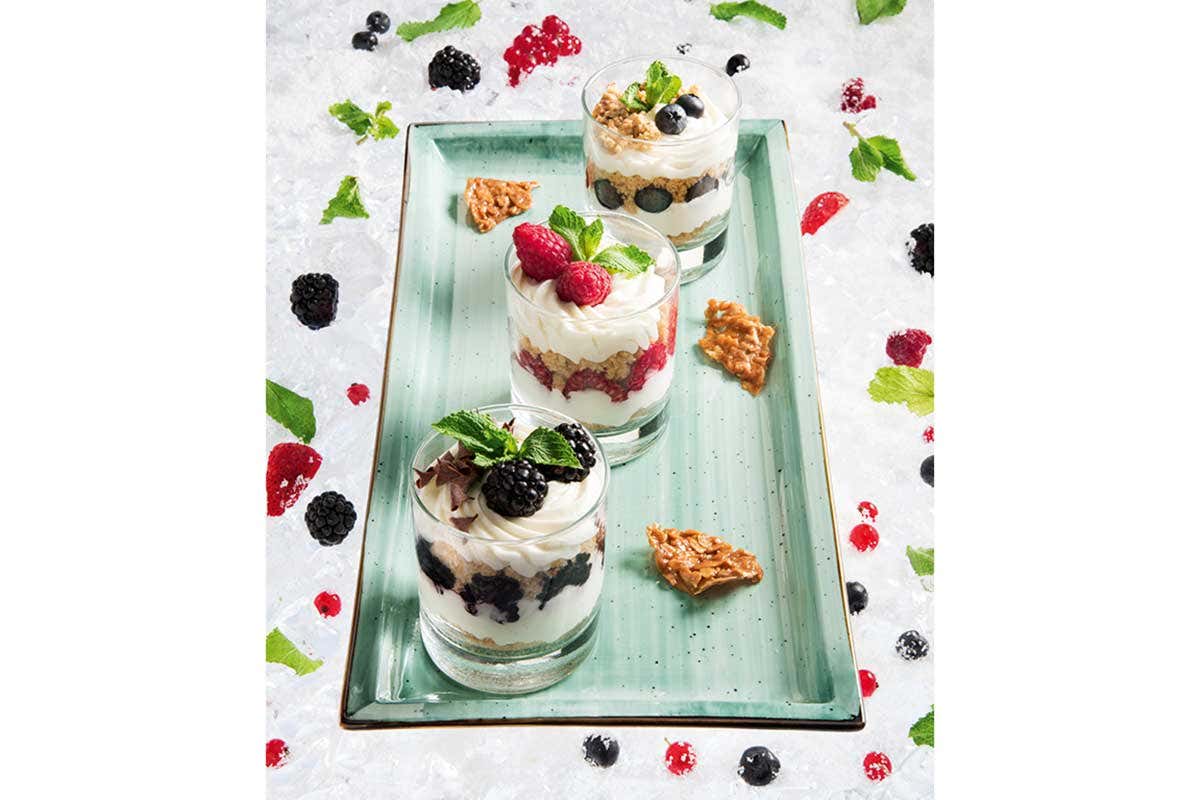 Grazie all’ampia gamma di prodotti della linea Dolce Menù sarà possibile creare una lista dessert davvero ricca, che contempla i grandi classici come le ricette più creative. Fra i dolci al cucchiaio non mancano crema catalana, mousse al cioccolato, panna cotta, creme caramel, tiramisù e zuppa inglese, ma anche bonet, cheesecake e sorbetti.