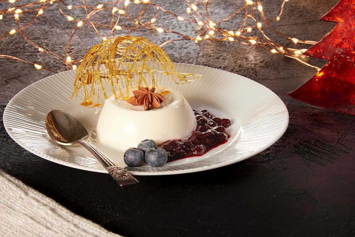 Panna cotta all’anice stellato e mirtilli Con Dolce Menù, dessert di alta pasticceria in pochi passaggi