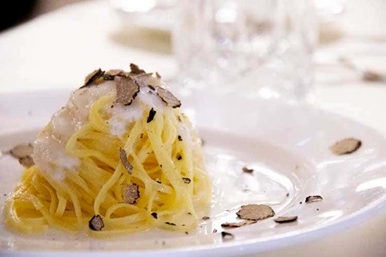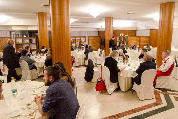 Seguono aneddoti, risate e un invito ufficile alla platea ad andare a Panzano in Chianti, alla Macelleria Cecchini, luogo d’incontro di appassionati gourmet da ogni parte del mondo. Mentre, a grande richiesta, ci regala l’emozione degli ultimi versi di Paolo e Francesca e ci carica con le parole di Cecco Angiolieri, Rosaria e Sandro Morganti stanno cucinando per lui e per tutti i partecipanti a questa bellissima festa che continua al Ristorante I Due Cigni e Montecosaro Scalo. Dario Cecchini siede al tavolo principale con Adolfo Guzzini, Elio Palombi, ideatore del Premio, e la sua signora, la «mi moglie» Kim. Grande donna, colonna portante del nostro macellaio filosofo. Che durante la cena fra Galantina di gallina e insalata russa, Vellutata nobile al cucchiaio, Tagliolini all’uovo su fonduta di Casciotta d’Urbino e tartufo, Fagiano all’uva, Pecorino di fossa con pera Angelica e Biscotto di mosto con crema di Anisetta, gira fra i tavoli e si offre, generoso e simpaticissimo come sempre, a foto, selfie, scambio di biglietti da visita e numeri di telefono.