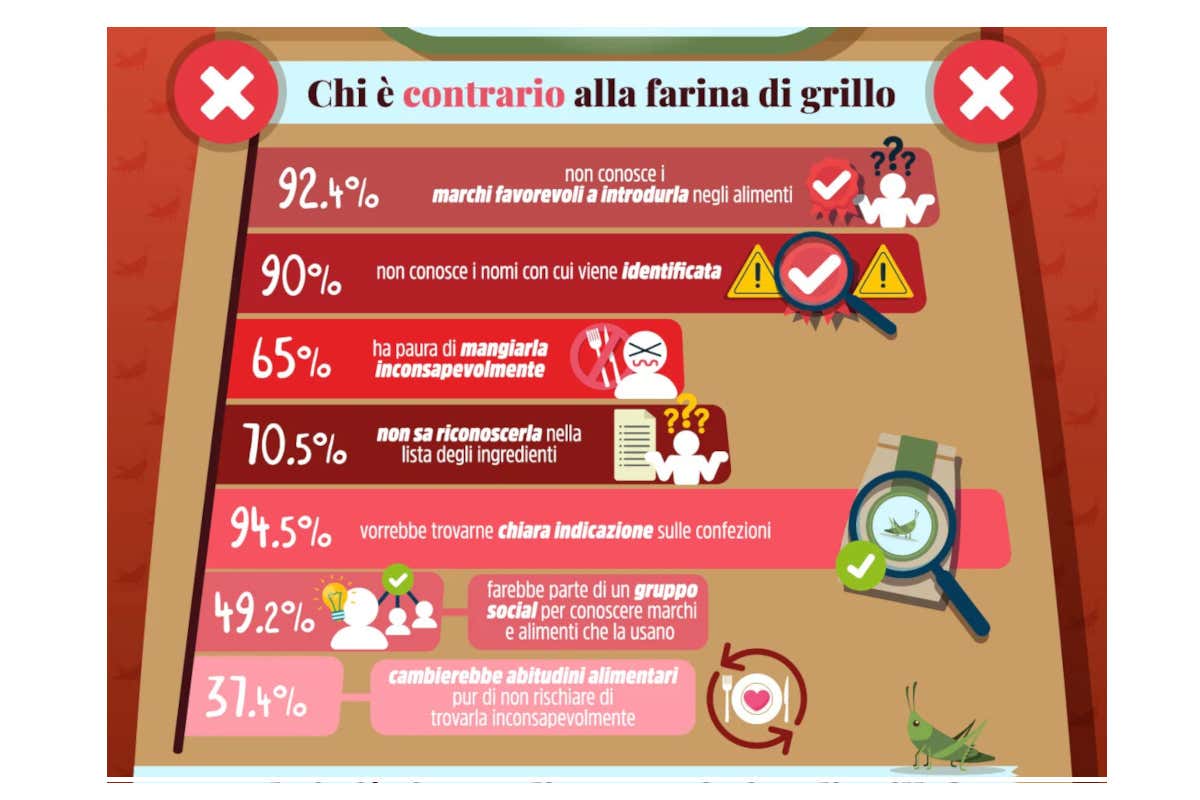 Dunque, secondo il sondaggio più del 70% degli italiani è favorevole alla vendita e all'uso della farina di grilli, ma oltre il 90% ha timore di mangiarla inconsapevolmente, evidentemente nella forbice di scarto tra i due dati rientra quel 7,5% degli intervistati che è già consapevole di mangiare insetti, mostrando più coerenza rispetto a quanti vedrebbero di buon occhio la produzione e la commercializzazione di un alimento che poi avrebbero paura di mangiare (solo inconsapevolmente?), e questo per il beneficio del pianeta.