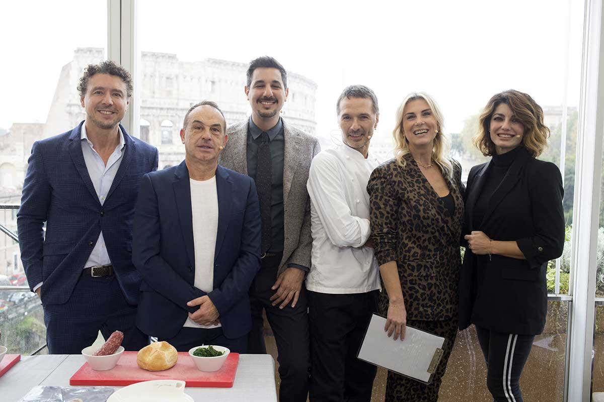 I vip impegnati in gara. Da sinistra: Gian Luigi Ligasacchi, Antonio Giuliani, Diego Thomas, il cuoco Gennaro Di Iorio, Federica De Denaro e Samantha Togni