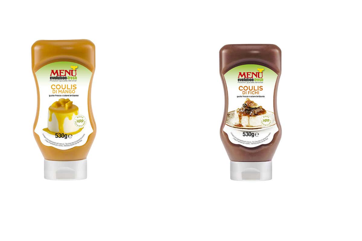 Le Coulis Menù, tipiche preparazioni francesi a base di frutta, succo di limone e zucchero, sono prodotte con la particolare lavorazione a freddo ad alte pressioni (HPP Technology) che permette di mantenere inalterata la freschezza ed il colore della frutta. Una linea nuova e versatile, ideale per colorare e rendere gustosi, in modo naturale i sorbetti, ma anche dessert al cucchiaio, frappè, granite e smoothie. Sei i gusti disponibili a oggi: Fragole, Mango, Fichi e le nuovissime Limone Primofiore, Mandarino tardivo di Ciaculli e Passion Fruit.