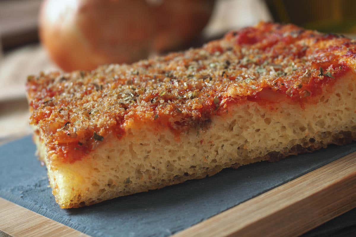 Lo sfincione, una focaccia alta, è un'alternativa alla pizza tradizionale