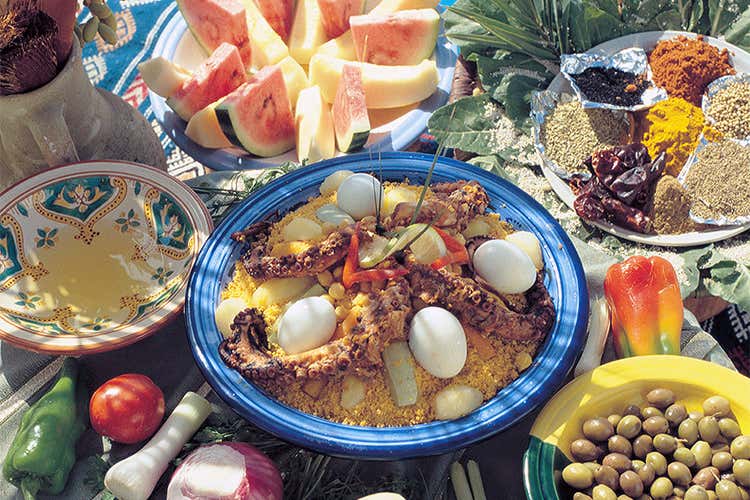 La cucina non ha un ruolo minore per comprendere la vita di chi vive tra le dune e quella del deserto ha influenzato più di altre - come la francese - a definire la tipica gastronomia nazionale tunisina. Molte sono le specialità da gustare in banchi improvvisati o nei tanti locali. Il couscous resta comunque il piatto simbolo del Maghreb che ogni famiglia ricava dal frumento macinato e che richiede una laboriosa preparazione. Viene cotto al vapore mentre nella pentola sottostante cuociono a lungo agnello, montone o altre carni con spezie e verdure. Saporito e croccante il pane, pagnotte schiacciate cotte nella sabbia arroventata.