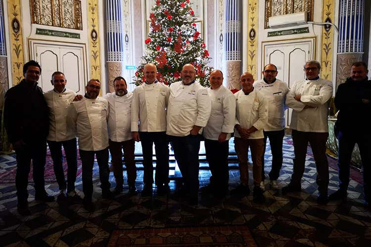 Enrico Derflingher con Giovanni Porretto e altri cuochi della delegazione Sicilia