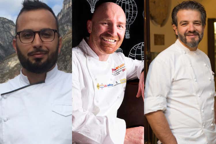 Giovanni D’Alitta, Alfio Ghezzi e Claudio Melis (A Madonna di Campiglio cena d’autore Prodotti tipici in mano a 3 cuochi stellati)