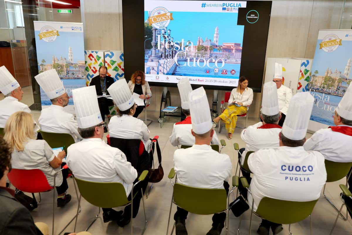 Dal 24 al 26 ottobre, Bari diventa la "capitale della cucina italiana" ospitando la "Festa nazionale del cuoco 2023". Questo evento è organizzato dalla Federazione italiana cuochi, dall'Unione regionale cuochi di Puglia e dall'Associazione cuochi baresi e attira centinaia di cuochi professionisti da tutta Italia e anche dall'estero. La manifestazione prevede la partecipazione di 19 delegazioni regionali, con circa 600 cuochi, e sette delegazioni straniere provenienti da Europa, Stati Uniti, Brasile, Australia e Paesi Baltici. La presentazione dell'evento si è tenuta in Regione, con la presenza di Aldo Patruno, direttore generale del dipartimento Turismo della Regione Puglia, Grazia Di Bari, consigliera regionale con delega alla Cultura, e Salvatore Turturo, presidente regionale dell'Unione cuochi.