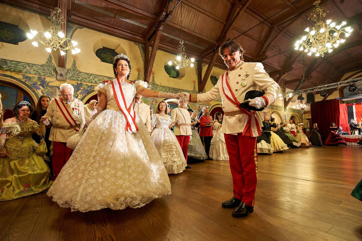 Ma il momento forse più atteso è il gran finale con il fastoso Gran Ballo dell'Imperatore nello storico Salone Hofer dell'Hotel Des Alpes, lo stesso albergo in cui alloggiarono i reali asburgici. Tra soffitti decorati, in una scenografia degna del celebre film con Romy Schneider, l’orchestra dal vivo suona polke e valzer, le danze ci trasportano nell’800. I corsetti, le divise, i costumi ricreati alla perfezione, seguendo le mode dell’epoca, rendono l’illusione perfetta. Un viaggio nel tempo accompagnato dal Bistrot Asburgico, calici di vino e dolci classici della pasticceria viennese.