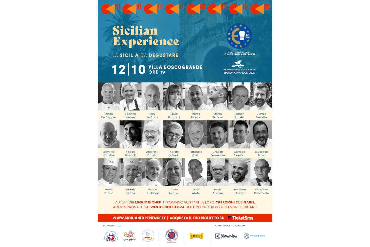 Nata dal pensiero condiviso di Natale Di Maria, chef resident di Villa Boscogrande e delegato regionale dell’associazione Euro-Toques Italia, di Enrico Derflingher, presidente Euro-Toques Italia ed Euro-Toques International, e di Gaetano Basile, noto giornalista ed enogastronomo palermitano che da anni racconta la Sicilia culinaria, e realizzata in partnership con Euro-Toques Italia, Sicilian Experience sarà una serata conviviale che vedrà riuniti chef, cantine e produttori, tutti insieme per festeggiare l’Isola recentemente riconosciuta “Regione europea della gastronomia” per l’anno 2025 dall’IGCAT (International Institute of Gastronomy, Culture, Art and Tourism).
