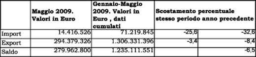 Prezzi Import, exportEsportazioni negative in valore con un calo del saldo di 6.5% rispetto allo stesso periodo dell'anno precedente.