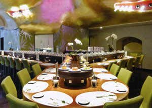 Il ristorante si apre sul Kaiten Sushi, il sushi bar dove le varietà di sushi, sia di pesce sia di verdure, rigorosamente freschissime, sono disposte su un tapis roulant che scorre davanti al bancone, e i clienti siedono sotto una vela che sembra una corolla di un fiore, rivestita in foglie d'oro. Al kaiten ogni piatto a un colore a cui corrisponde un prezzo. Piatti esotici e creativi, semplici e salutari, sono creati sotto gli occhi degli ospiti da cuochi giapponesi. Sul kaiten non sfila solo sushi ma anche altre specialità della cucina nipponica come la tempura, il sashimi e i dessert.