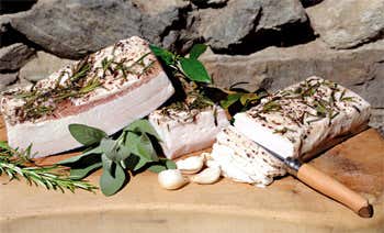 del fatto che già diversi secoli fa si seguivano specifici metodi di produzione e conservazione. La miscela di salatura è composta da cristalli di sale, acqua, aglio, foglie di lauro, rosmarino, salvia, con l'aggiunta di altre erbe di montagna reperibili in loco. In questa fase, la temperatura è mantenuta bassa per conservare inalterate le caratteristiche del prodotto. I recipienti sono chiusi e ricoperti con acqua salata, portata prima a ebollizione e poi lasciata raffreddare, in modo da ottenere la quantità di salamoia necessaria a questa fase, che si protrae per almeno tre mesi. Per una conservazione più prolungata si usano vasi a tenuta ermetica e si copre il lardo col