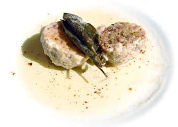 Preparazione: pane raffermo a quadratini, prezzemolo tritato, formaggio di malga tritato, uova, sale e pepe, contrariamente alla ricetta più diffusa, questi ingredienti vanno mescolati a freddo, prima di mettere il latte, che viene aggiunto solo alla fine. Cotti nel brodo e serviti con burro fuso e salvia