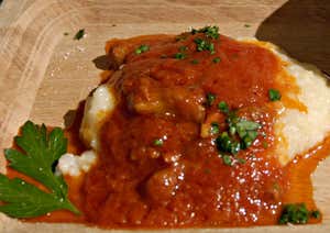 Preparazione: prendete un piatto fondo, rompeteci le uova, miscelatele con acqua e sale, stendete a farina su un piano, spruzzate piccole gocce di uovo, impastando e sfregando con le mani ricavate dei piccolissimi gruppi di impasto che setaccerete e cuocerete in acqua bollente e salata. Per il condimento fate rosolare aglio e peperoncino in olio d'oliva, dorate i funghi, sfumate con vino bianco ed aggiungete passata di pomodoro, fate cuocere e restringere la salsa per circa 2 ore, salate. Servite su di un tagliere di legno e cospargete il tutto con parmigiano reggiano e prezzemolo tritato.
