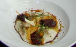 a ricetta proposta dallo chef Martin Obermarzoner Spuma di patate al tartufo con panna acida e guanciale di maialino confit