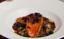 La ricetta proposta dallo chef Wolfgang KerschbaumerFiletto di triglia arrostito, su zuppa d'orzo con radicchio