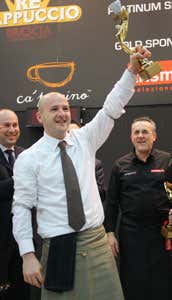 CARRARA (MS) - Francesco Sanapo (nella foto) è il nuovo campione italiano baristi caffetteria 2010. Secondo e terzo posto per Eddy Righi e Orazio Saretto. Il Campionato italiano baristi caffetteria, organizzato da Acib (Associazione campionato italiano baristi) patrocinato da Scae (Speciality coffee association of Europe), si è svolto a Carrara (Ms) nell''ambito del Tirreno Ct, Salone nazionale per alberghi, caffè, bar, gelaterie, pasticcerie, pizzerie, panifici, ristoranti e comunità.