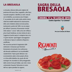 Infatti, è chiaro agli addetti al settore che per organizzare una festa della brasaola ci vuole, innanzitutto, il supporto del Consorzio e delle autorità locali e territoriali e non solo la fornitura di un tipo, ben preciso, di bresaola... come si evince dal volantino della manifestazione (che riportiamo sotto in allegato e nella foto a sinistra).