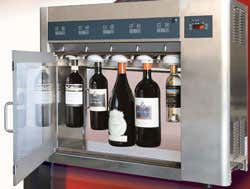 Si chiama Eurobottle C5B (nella foto a destra), la climatizzata bifacciale 5 vie dell'azienda EasyWine (www.easywine.it). Il dispenser è predisposto per contenere 5 bottiglie di riserva. Il sistema di erogazione garantisce la quantità della dose selezionata, senza più sprechi o sovradosaggi, assicurando in tal modo la redditività stessa della bottiglia. Tre diverse dosi di servizio. Date le dimensioni contenute della macchina è possibile collocarla pressoché ovunque. Erogazione semplice tramite 'un click” e adattabilità a vari formati e tipologie di bottiglie. Grazie al particolare sistema di aggancio, le bottiglie, una volta aperte non vengono manipolate evitando quindi qualsiasi tipo di contaminazione. Inoltre, il sistema di defrost automatico e l'autopulizia delle parti eroganti garantiscono un'igiene massima.