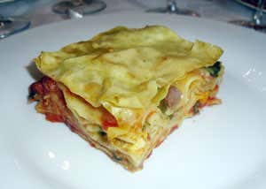 Si prosegue con il timballo teramano. Non entusiasma al primo impatto ma poi si lascia svelare come accurato parto di grande tecnica della cucina per come rasenta disarmonia a fronte dell'imperio preciso di mantenere una separatezza di sapori che è essa, ce ne avvediamo poco a poco, a rendere pregevole e memorabile questo timballo.