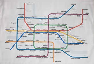 Pizza-metro e Pasta-metro (nella foto a destra): sono l'interpretazione 'alimentare” delle linee della metropolitana, che rivisitano le fermate in chiave di ingredienti e condimenti simbolo della tradizione culinaria italiana. Il made in Italy diventa così assolutamente trasversale, dal design della tovaglietta alla cucina da essa celebrata. Un viaggio metropolitano ricco di gusto, un ideale viaggio nei sapori di casa.