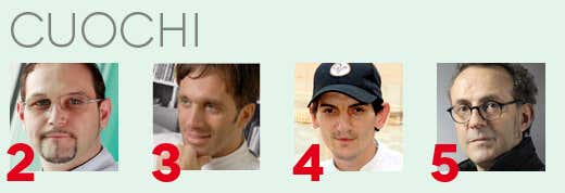 maggior numero di voti "espliciti" nei commenti), amministratore del gruppo virtuale Cim-Chef italiani nel mondo e chef del Ristorante Aqua di Hong Kong; al terzo Davide Oldani (6.456 voti), cuoco e patron del Ristorante D'O di Cornaredo (Mi); quarto posto per Emanuele Esposito (5.664 voti), general manager de Il Villaggio a Jeddah (Arabia Saudita), promotore dell'evento Mediterraneas e membro del Cim e del Gvci (Gruppo virtuale cuochi italiani all'estero); quinto Massimo Bottura (5.104 voti) dell'Osteria Francescana di Modena, che nel 2011 ha ricevuto dalle principali Guide italiane della ristorazione le valutazioni più elevate, mettendole per la prima volta tutte d'accordo.