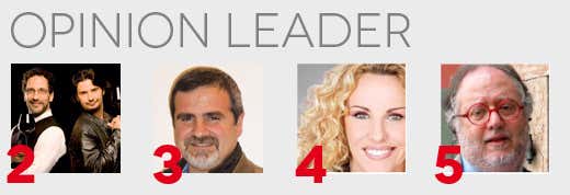 Nella classifica della categoria Opinion leader (52.777 voti totali), dopo il vincitore Davide Paolini (13.899 voti), si sono posizionati: in seconda posizione il duo radiotelevisivo Fede e Tinto (12.286 voti), conduttori di 'Decanter” su Rai Radio 2 e di 'Fuori di Gusto” su La7d; al terzo posto con 9.319 voti Sandro Romano (il