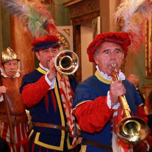 è un taxi del XXI secolo a condurci al Palazzo Borghese in via Ghibellina, poco distante da Santa Croce, ma è musica araldica del XIV secolo quella che ci accoglie, allorquando ci si accinge a godere della serata.