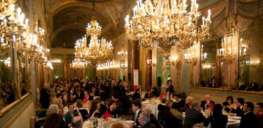 Il momento che segna il passaggio dalla convivialità dell'aperitivo al garbato procedere della cena di gala è nuovamente scandito dai musici, che adesso sono tutti insieme e possono quindi eseguire musiche di maggiore coralità.