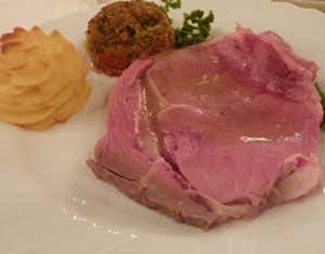 Sapore delicato anche per il Gran pezzo di manzo di razza Chianina al forno, morbido e cotto a puntino con, come contorno, una spuma di patate Duchesse e pomodoro Pachino a grappolo gratinato con erbe fini. Per il secondo è stato scelto un Piastraia Bolgheri rosso Doc 2006 di Michele Satta.