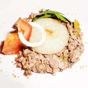 Con l'aggiunta di un filo d'olio, prezzemolo, due capperi, uno spruzzo di limone, sale nero, salsa di soia, pepe e timo fresco (occorre avere anche amiche fantastiche che coltivano l'orto dedicandosi maggiormente alle erbette aromatiche), la carne così gelatinosa e un po' pesante, si sgrassa e acquisisce una consistenza e una intensità totalmente diversa, percepibile vivacemente al palato (nella foto a destra).
