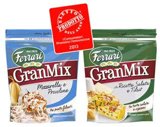 Miscele di formaggi grattugiati e confezionati freschi selezionati pronti all'uso per la realizzazione facile e veloce di specifici piatti in cucina. GranMix Ricotta salata e tilsit: per la realizzazione di torte salate e ripieni salati in genere (canneloni, ravioli, verdure...). GranMix Mozzarelle e Provolone: per la realizzazioni di piatti e ripieni filanti (lasagne filanti, supplì filanti, spinaci filanti saltati in padella).