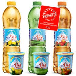 Senza coloranti o conservanti, SanThé Sant’Anna è vero infuso di thé, preparato secondo la tradizionale infusione in acqua calda delle foglie della pianta. Disponibile nei gusti Limone, Pesca (9,5% di puro succo di pesca) e Thé Verde, in bottiglie da 1,5 e 0,5 litri e bicchierino da 200 ml, da bere con la cannuccia o “pelando” il coperchio.