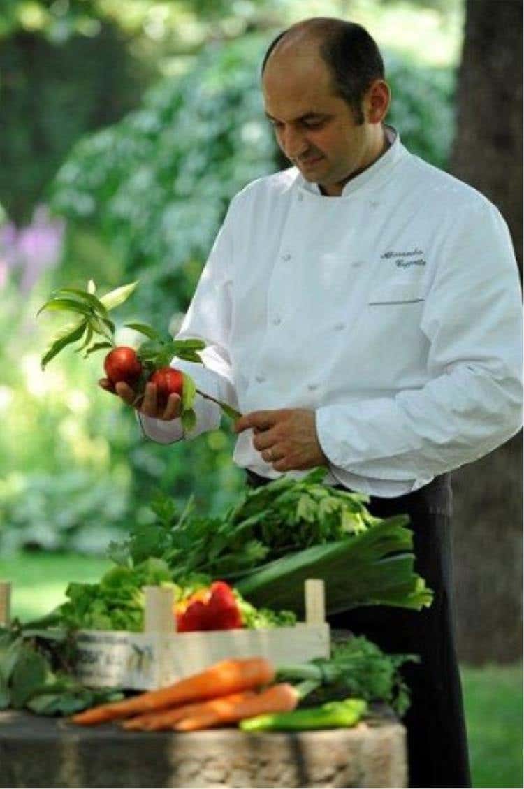 Il suo territorio è la campagna franciacortina. Il suo palcoscenico è Villa Calini, una dimora seicentesca immersa in un bel parco, a due passi da Brescia, a Coccaglio: qui sta fra i fornelli Alessandro Cappotto, cuoco dell’omonimo ristorante. La sua è una cucina che sfugge alle definizioni univoche, proprio perché si ispira a diverse filosofie: non è solo vegetariana o macrobiotica, non è semplicemente tradizionale o mediterranea, eppure in qualche modo attinge a ciascuna di queste correnti senz afarsi prendere la mano da qualche moda del momento.
