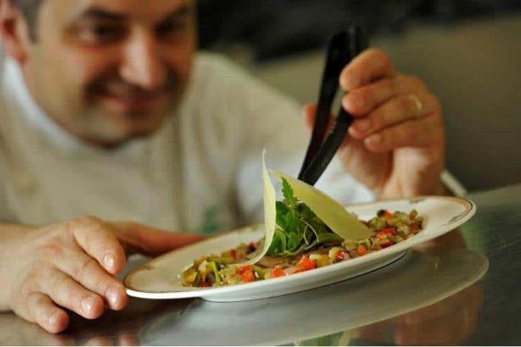 Egrave; il suo menu a rendere l'ideala delal sua cicina. Si va daq puro territorio come il “coniglio all’olio, salame, uovo, barba del prete e pancetta croccante”, ad una “tagliata di manzo wagyu”, direttamente dal Giappone. Ciò che unisce i piatti è però