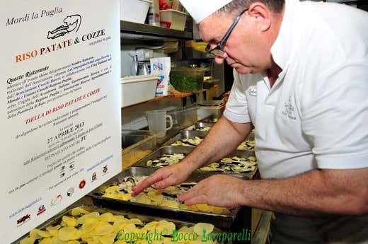 “Mordi la Puglia”, la manifestazione che ho ideato, ha avuto e avrà in futuro proprio lo scopo di calamitare l’attenzione sulla nostra gastronomia e sulla nostra offerta ristorativa. Così si è voluto iniziare proprio dalla Tiella di Riso Patate e Cozze, usandola come “cavallo di Troia” e come anello di congiunzione tra chef, ristoratori, clienti e operatori della comunicazione, in una giornata che ha visto tutti uniti con l’unico scopo di divulgare le eccellenze della nostra terra. Notevole è stato il successo riscontrato tra i clienti e l’idea è stata molto apprezzata anche dai ristoratori, che hanno potuto, così, svolgere opera di divulgazione senza muoversi dal proprio locale. Proprio questi ultimi, numerosissimi e tra i più importanti e rappresentativi della regione, sabato 27 aprile si sono cimentati nella preparazione del piatto e lo hanno offerto gratuitamente ai clienti, raccontandolo e regalando la ricetta spiegata in ogni suo passaggio.