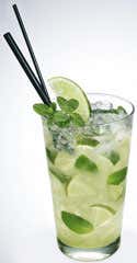 Mescolare (senza pestellare) la menta sul fondo di un highball con il succo di lime e lo zucchero, coprire di ghiaccio ed aggiungere il rum e quindi l’acqua frizzante. Guarnire con rametti di menta e uno spicchio di lime. Servire con una cannuccia.