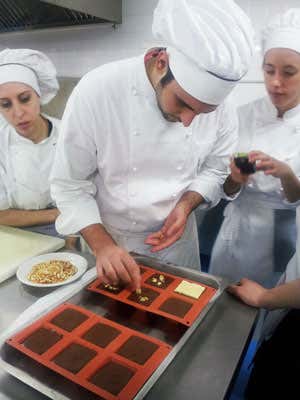 Corsi brevi di panetteria, pasticceria o settoriali (ad esempio sul cioccolato) stanno avendo una sempre maggiore richiesta. E a questo proposito, senza far torto a nessuno dei tanti e preparati docenti, non possiamo non sottolineare la presenza di due eccellenze patrimonio della scuola, il bravo Massimo Pica (nella foto a sinistra), imprenditore di pasticceria a Milano, e l’altrettanto bravo docente di sala Salvatore Rubinacci (ex Four Seasons), che tra l’altro, proprio per un rinnovato interesse a formare allievi per la sala, ha in mente corsi moderni in un momento in cui in tanti vogliono diventare cuochi, mentre il mercato chiede e ricerca, appunto, addetti alla sala.
