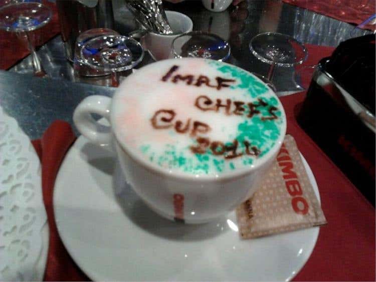 gruppo Kimbo per dare sfogo al suo estro creativo! Il bartender campione mondiale di cappuccino e capace di interpretare il caffè in oltre 60 modi differenti, crea un decòr a tema per ogni evento, ricorrenza od occasione che solleciti la sua fantasia, anche solo per augurare una buona giornata.