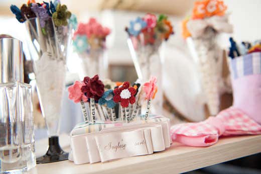 I famosi “fiori all’occhiello”, interamente ricamati a mano e rigorosamente abbinati a contrasto sulle giacche artiginali