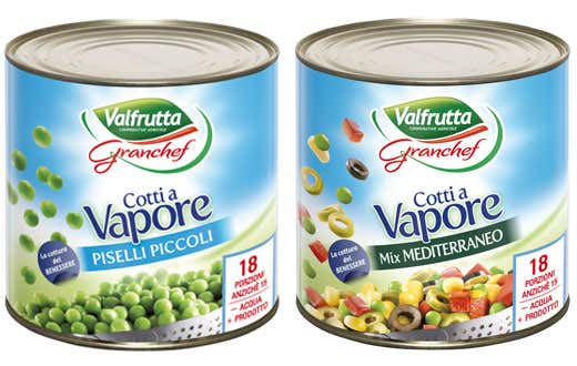 Sapore fresco, colore naturale, consistenza compatta, integrità ed elevato valore nutrizionale sono le principali caratteristiche dei “Cotti a Vapore” Valfrutta Granchef, alle quali si aggiungono l’estrema praticità d’uso perché sono prodotti subito pronti senza la necessità di scolarli, nonché la resa elevata in quanto contengono il 18% in più di prodotto rispetto agli standard. In sostanza: più prodotto e meno acqua.