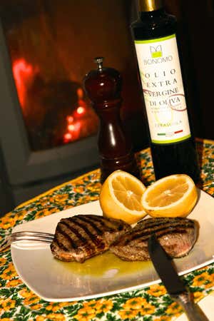 Per la prova d’assaggio abbiamo voluto testarlo con una tagliata di scamone: dapprima l’abbiamo marinata a crudo semplicemente con olio Bonomo, sale integrale di Motia (Tp) e pepe nero. Poi l’abbiamo grigliata alla brace e condita con olio Bonomo, sempre a crudo: la carne così preparata non ha avuto bisogno di altri ingredienti per essere esaltata, perfetta così in un binomio naturale, espressione di gusto e aromaticità.