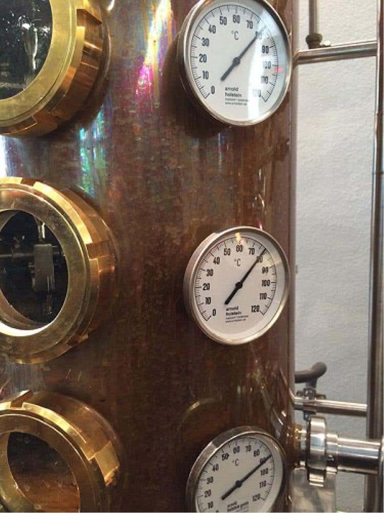 Durante la fase della distillazione dell’infuso che viene preparato circa 2 giorni prima, altri aromi freschi, posti in speciali cestelli, vengono estratti grazie all’evaporazione che favorisce la fuoriuscita degli oli essenziali, conferendo così al gin la caratteristica leggerezza. La fase dell’invecchiamento fatta in contenitori di pietra da 100 litri dura 100 giorni e per bilanciare la gradazione alcolica (sui 47°) si aggiunge acqua pura di una sorgente della fattoria.