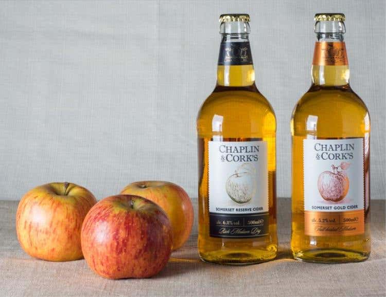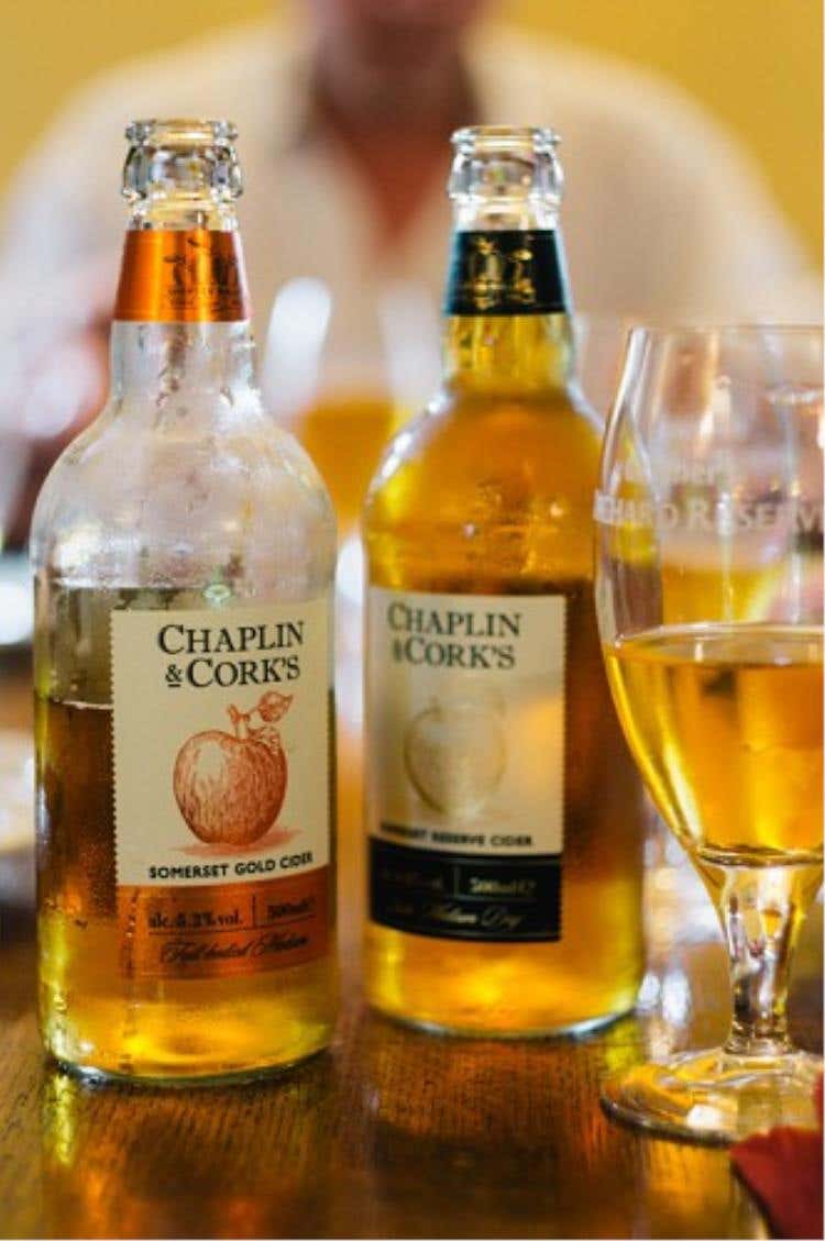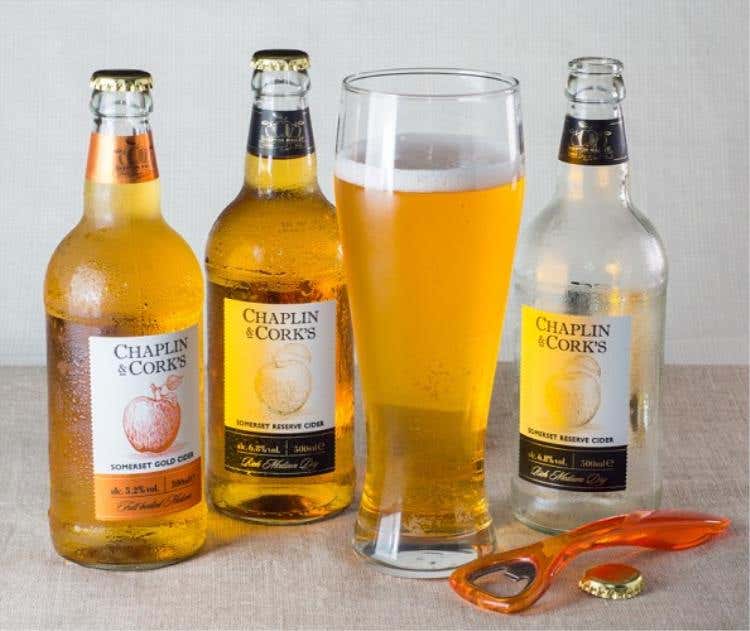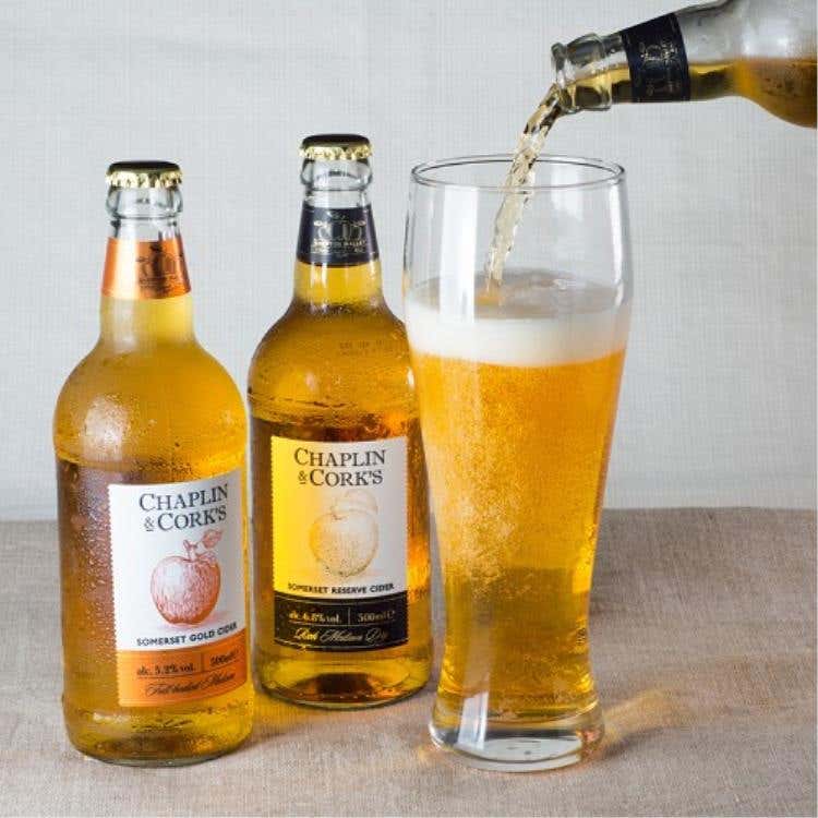 Chaplin&Cork’sUn sidro filtrato e limpido è invece Chaplin&Cork’s. Realizzato dai due “master cider maker” della Shepton Mallet Cider Mill con una ricetta segreta perfezionata nell’arco di 20 anni, è un blend di varietà di mele (principalmente la Bittersweet e la Bittersharp) combinate per ottenere un sidro molto morbido e bilanciato. Non diversamente dal vino, infatti, il sidro deve avere una buona bevibilità e un notevole equilibrio in bocca. Chaplin&Cork’s presenta un inizio leggermente dolce, finisce con un retrogusto acido e astringente e lascia la bocca piena di sapori. Questo prodotto, grazie alla tipologia di mele usate e all’originale processo di produzione, ha un sapore molto complesso con tannini pronunciati e un ottimo finale acido, che ti fa desiderare di stappare subito un’altra bottiglia! Chaplin&Cork’s è disponibile in due varianti: “Gold”, un sidro mediamente corposo, equilibrato, con un gusto dolceamaro e una gradazione alcolica del 5,2%, e “Reserve”, mediamente secco, con un gusto ricco e rotondo e una gradazione alcolica del 6,8%.