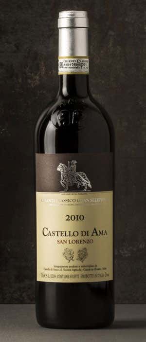 Dall’annata 2010 il Castello di Ama prende il nome di San Lorenzo in omaggio alla splendida valle sulla quale si affacciano le ville settecentesche di Ama. Questo vino è il frutto del Vigneto San Lorenzo e della selezione dei vigneti più vecchi e vocati della proprietà (età media 25 anni). La proposta della Gran Selezione è un nuovo passo per la denominazione del Consorzio Chianti Classico in termini di origine e di qualità superiore, imponendo che le uve debbano essere integralmente prodotte in azienda ed il vino immesso sul mercato 30 mesi dalla vendemmia.